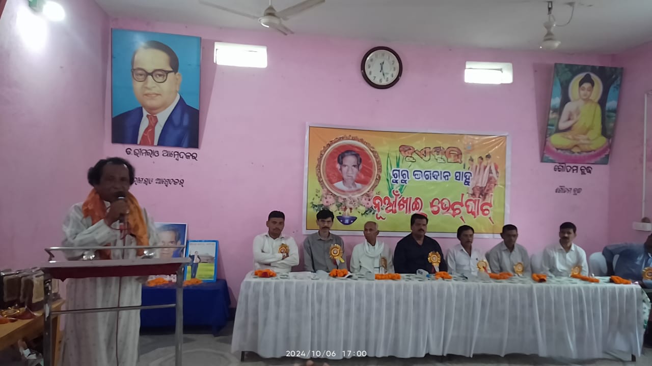 ବରଗଡ଼, 7/10-(ସଂସ୍କୃତି ମିଡ଼ିଆ )=ବରଗଡ଼ ଜିଲ୍ଲା ବରପାଲି ଆମ୍ବେଦକର ଭବନ ଠାରେ ଆଜି ଅପରାହ୍ନ ୪ ଟା ସମୟରେ ଜୁଏହୁଲା ଖବର କାଗଜ ତରଫରୁ ନାଟ୍ୟ ମହର୍ଷି ଗୁରୁ ଭଗବାନ ୧୫ ତମ ନୂଆଁଖାଇ ଭେଟ୍ ଘାଟ୍ ଅନୁଷ୍ଠିତ ହୋଇଯାଇଛି। ଜୁଏହୁଲା ଖବର କାଗଜ ର ସମ୍ପାଦକ ଅରକ୍ଷିତ ମହାନନ୍ଦ ଙ୍କ ପୌରହିତ୍ୟରେ ନାଟ୍ୟ ମହର୍ଷି ଫଗୁନୁ କୁମ୍ଭାର (କାର୍ଯ୍ୟନିର୍ବାହୀ ସଂପାଦକ, ଜୁଏହୁଲା)ଙ୍କ ସଂଯୋଜନା ରେ ଅଧ୍ୟାପକ ଲୋକବନ୍ଧୁ ପଧାନ ଙ୍କ ପରିଚାଳନା ରେ ଏହି ସଭାରେ ବିଭିନ୍ନ କ୍ଷେତ୍ରରେ ପାରଦର୍ଶିତା ଅର୍ଜନ କରିଥିବା ପ୍ରତିଭା ମାନଙ୍କୁ ସମ୍ବର୍ଦ୍ଧିତ କରାଯାଇଥିଲା।