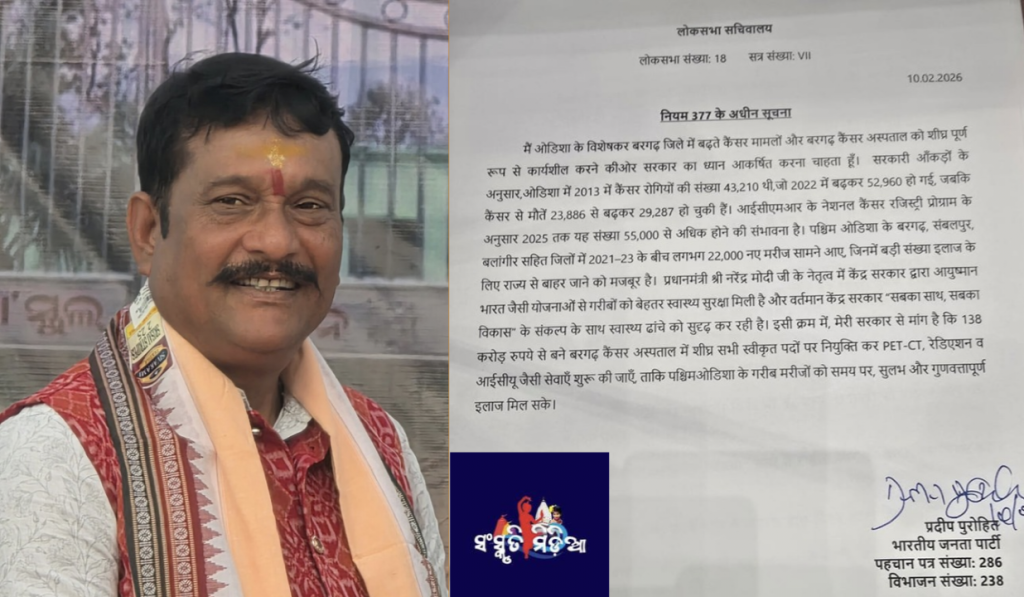 ବରଗଡ଼ରେ ବଢୁଛି କର୍କଟ ରୋଗ ଆତଙ୍କ: ଶୀଘ୍ର ପୂର୍ଣ୍ଣ କାର୍ଯ୍ୟକ୍ଷମ କରାଯାଉ କର୍କଟ ହସ୍ପିଟାଲ:- ସାଂସଦ ପ୍ରଦୀପ ପୁରୋହିତ