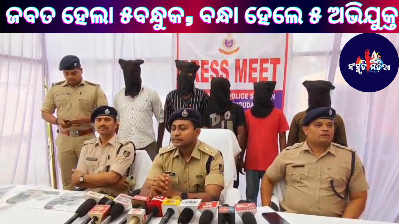 ଝାରସୁଗୁଡା, ୧୨/୩(ସଂସ୍କୃତି ମିଡ଼ିଆ )-ଝାରସୁଗୁଡ଼ା ଜିଲା ବ୍ରଜରାଜନଗର ଥାନା ପୋଲିସକୁ ମିଳିଛି ବଡ଼ ସଫଳତା l ୫ ବନ୍ଧୁକ ଜବତ କରିବା ସହ ୫ଜଣଙ୍କୁ ଗିରଫ କରିବାରେ ସଫଳ ହୋଇଛି ପୋଲିସ l ସୂଚନା ଅନୁସାରେ ବ୍ରଜରାଜନଗର ଥାନା ରାମପୁର ଅଞ୍ଚଳରୁ ୫ ଜଣ ଯୁବକଙ୍କୁ ପୋଲିସ ଗିରଫ କରି ମଙ୍ଗଳବାର କୋର୍ଟ ଚାଲାଣ କରିଛି। ସେମାନେ ହେଲେ ବ୍ରଜରାଜନଗର ଥାନା ଅଧୀନ ରାମପୁର ଅଞ୍ଚଳର ସନ୍ତୋଷ ବିଶ୍ୱାଳ(୩୦), କହ୍ନେୟା ସହିସ(୩୩), ଗଙ୍ଗା ନଗରର ଏମ୍ଡି ମୁନା(୨୫), ମୁଖ୍ୟ ବଜାର ଅଞ୍ଚଳର ଦେବେନ୍ଦ୍ର ପାଲ୍ ସିଂ(୨୯) ଏବଂ ଚୁନାଭଟା ଅଞ୍ଚଳର ସନ୍ଦୀପ ଦାସ(୩୩) l ସେମାନଙ୍କ ନିକଟରୁ ୫ଟି ବନ୍ଧୁକ ଓ ୪ଟି ଜୀବନ୍ତ ଗୁଳି ଜବତ କରାଯାଇଛି। ସେମାନଙ୍କ ନାମରେ ଏକାଧିକ ମାମଲା ରହିଛି ବୋଲି ବ୍ରଜରାଜନଗର ଥାନାରେ ମଙ୍ଗଳବାର ଅନୁଷ୍ଠିତ ସାମ୍ବାଦିକ ସମ୍ମିଳନୀରେ ଝାରସୁଗୁଡ଼ା ଏସ୍ପି ଗୁଣ୍ଡାଲା ରେଡ୍ଡୀ ରାଘବେନ୍ଦ୍ର କହିଛନ୍ତି। ତାଙ୍କ ସୂଚନା ଅନୁଯାୟୀ, ରାମପୁର ଅଞ୍ଚଳର ଏକ ସ୍ଥାନରେ ସୋମବାର ରାତିରେ ଗିରଫ ଯୁବକମାନେ ଅପରାତ୍ମକ କାର୍ଯ୍ୟ କରିବା ପାଇଁ ଏକତ୍ରିତ ହୋଇଥିଲେ। ଖବରପାଇ