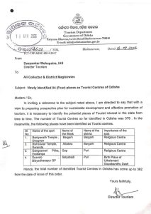 ଫଳରେ ରାଜ୍ୟ ମାନଚିତ୍ରରେ ଥିବା ୩୭୮ ରୁ ୩୮୨ କୁ ବଢିଛି ପର୍ଯ୍ୟଟନ ସ୍ଥଳୀର ମାନ୍ୟତା ବୋଲି ଚିଠିରେ ଦର୍ଶାଯାଇଛି l